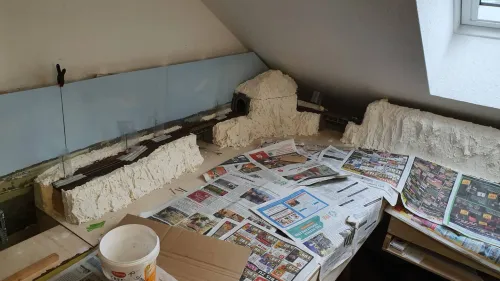 Um Klebstoffspuren oder andere Baumängel der alten Häuser zu kaschieren, kann man die auch mit Bewuchs versehen. Ich habe das vor lange Zeit mal so gemacht (da gab es allerdings nichts zu kaschieren):