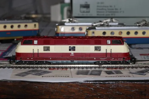 Als mein Bruder dann Anfang der 90er Jahre ausgezogen ist, hat er mir sein Modellbahnbrett vermacht, aber alles rollende Material mitgenommen. Somit musste ich mir selber Loks und Wagen versorgen. In Oelsnitz gab es damals noch einen Modellbahnshop und meine ersten Loks waren die DB BR 221 in rot/beige und die ÖBB 1020 in blutorange. Weitere Loks und Wagen kamen dann natürlich noch dazu. Ein entfernter Verwandter hat zum Beispiel alle seine TT - Sachen verkauft, weil er auf die Spurweite N umgestiegen ist.