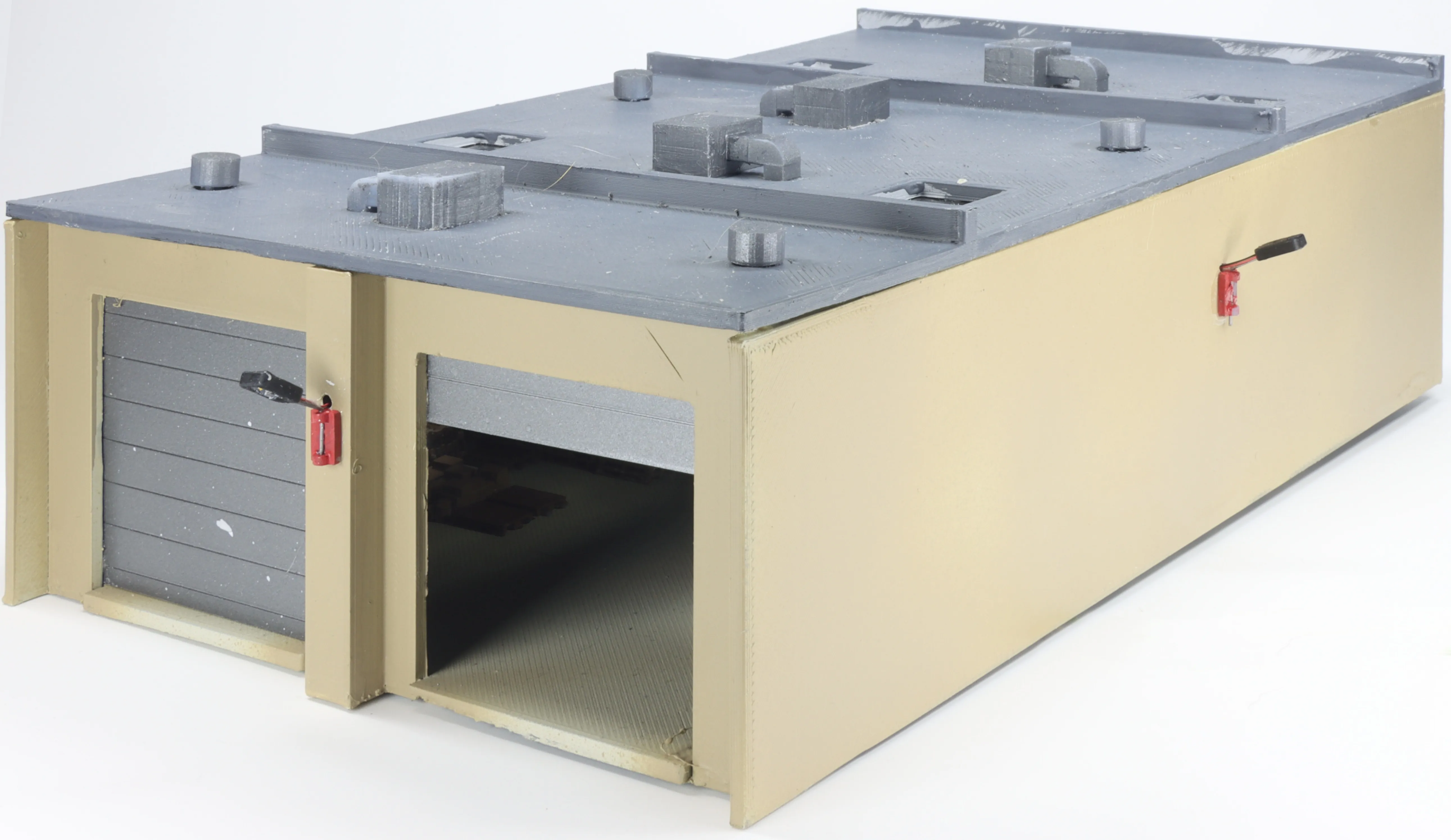 Bei den neuen Gebäuden hab ich schon mal angefangen, die etwas zu altern. Beim Güterschuppen fehlt aber noch das Dach und einer der kleinen Eingänge.