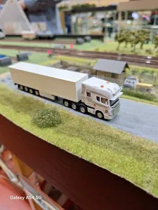 Es gibt 4-achsige Zugmaschinen von Scania, wobei die meistens nur zwei zwillingsbereifte Achsen haben und nicht drei. Was ich aber noch nie gesehen habe, sind solche langen Fahrerhäuser, die US-typisch an Einfamilienhäuser erinnern. Auch der Sinn eines Aufliegers mit vier Achsen erklärt sich mir nicht. In den USA werden zwar gerne ein paar Achsen mehr verbaut, weil dort Brücken nicht nach Gesamtmasse des Fahrzeuges sondern nach Achslast zugelassen werden, jedoch kenne ich auch da keine 4-achsigen Kofferauflieger, denn damit dürfte man schwer um die Kurven kommen und mehr Räder machen den Auflieger auch teurer in Anschaffung und Unterhalt. Selbst in Mexiko oder Australien, wo Sattelzüge beliebig lang sein dürfen und es keine Gewichtsbeschränkungen gibt, haben dortige Roadtrains keine 4 Hinterachsen unterm Auflieger.