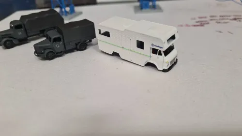 Ein Wohnmobil entsteht. Mit farblicher Hilfe von Andre. LKws sind von Andre