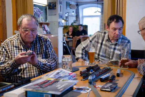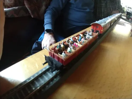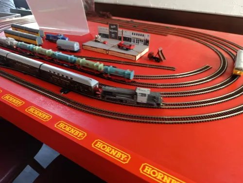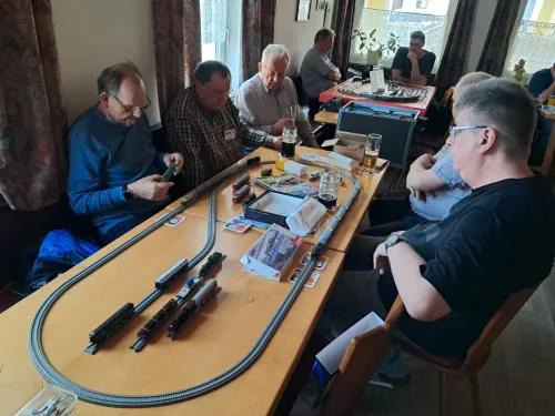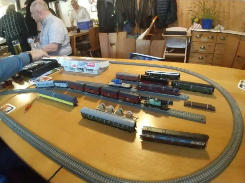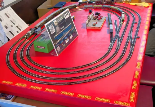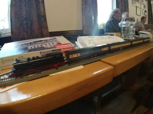 Recht herzlichen Dank gilt diesmal Roland Lange von Hornby, der das erst mal in Wiesau war. Leider hatte es die neusten Modelle noch nicht zu ihm geschafft, da diese noch beim Versandunternehmen unterwegs waren. Das Gleissystem von Hornby ist auch interessant vor allem machen die Weichen einen sehr guten Eindruck, sind mit gefederter Zunge ausgestattet und auch preiswert