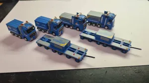 Eher die wenigen Achsen der beiden Anhänger machen mir da mehr Kopfzerbrechen, aber so viel Spielraum sollte bei der MoBa drin sein, alles gut und top.