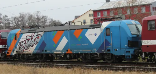In Frankfurt (Oder) standen auf dem Gleis, das normalerweise den Delta-Rail-Lokomotiven vorbehalten ist, Akiem 186 262-2 und Railinvest 185 540-2: