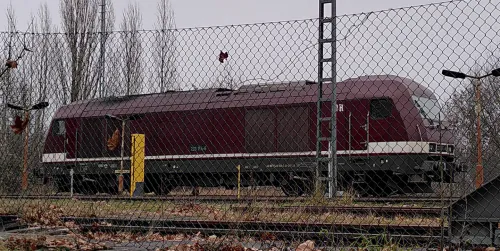 ... und eine einsame Diesellok, DR 223 154-6, mit dem Handy durch den Zaun geknipst:
