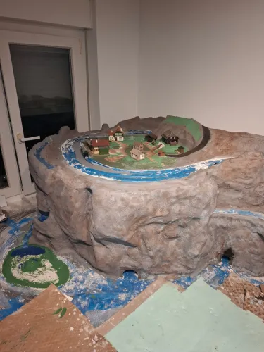 Die Grundplatte ist runt 400×140cm, mit 2 Wendeln zu je 7 Etagen... ....Die zwei Wendel waren mal eines, um die erste, größere Planung zu betonen 😄