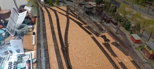 was hälst du davon bei der Einfahrt zwischen den Rechten und Mittleren Gleis noch 2 Bogenweichen einzubauen, müssen ja nicht unbedingt funktionieren, das würde in meinen Augen dann schon mehr nach Bahnhofseinfahrt aussehen.