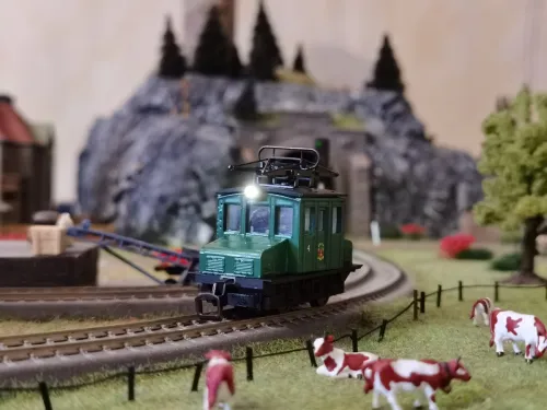 Diese habe ich bei einem Bekannten lackieren lassen und mit eigen erarbeiteten Decals beschriftet. Als Antrieb dient ein Halling-Drehgestell, der Rahmen entstand am eigenen PC mit Druck über Shapeways. Die Pantos stammen aus dem Hause Beka, die ich zufällig auf Kleinanzeigen entdeckte. Die Loks werden noch digitalisiert mit Nem651-Decoder, eine einteilig Spitzenbeleuchtung aus dem Hause Fischer wird noch eingebaut.