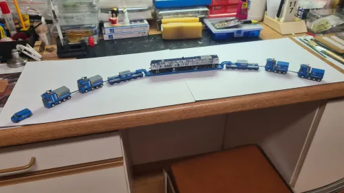 Die Tage mal ein Begleidfahrzeug vorbereitet. Nun kann es zu Andre zum lackieren. Das blanko Gehäuse vom Sprinter ohne Fahrwerk usw. Hat Andre in Chemnitz aufgetrieben.![]()