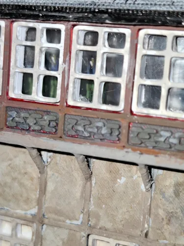Die Klinker waren leuchtent rot, wie auch der Schornstein, die verputzte Wand monoton grau. Nun mal die erste Farbe drauf und im Makro sieht man wo es noch fehlt, ohne Brille sieht es besser aus 🤷♂️😂