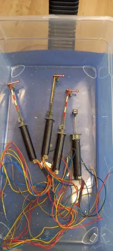 Verkaufe aus Umbau übrig gebliebene 4 Signal . Die Signale funktionieren alle . Beleuchtung ist auch in Ordnung . Das einzigste was fehlt sind die Befestigungsringe für die Antriebe und die OVPs .