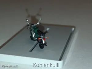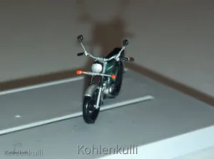 Einige, eigentlich entscheidende Kleinigkeiten, fehlen Produktionsbedingt, die aber meiner Meinung nach dazu gehören. Also fix mal Spiegel, Blinker, Fußrasten umd das Zündkabel drangebaut ![]()