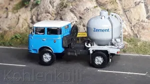 Was die Zugfahrzeuge betrifft, weiß ich aus Kindheitserinnerung, das ich mal einen S 4000 mit "Birne", als auch als Pritsche gesehen habe, aber immer mit zwei Siloanhänger.