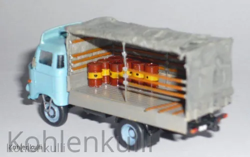 hier der LKW mit den kleineren Fässern, die nun viel gefälliger aussehen