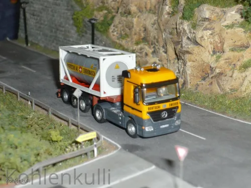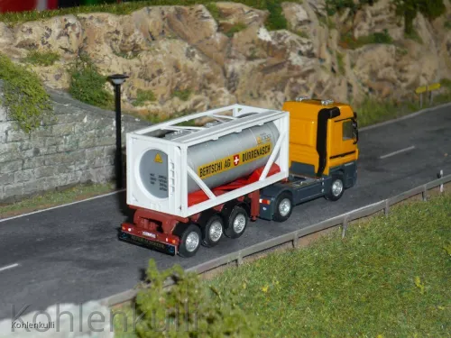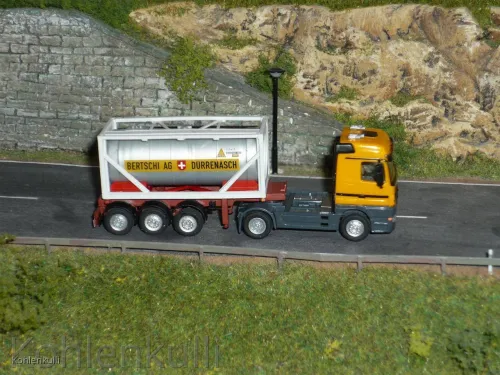 nach längerer Zeit gibt es von mir mal wieder was neues, diesmal ein kurzen 3-achsigen Containerauflieger. Dieser ist, wie der letzte, aus einen Herpa-Auflieger entstanden und dementsprechend gekürzt. Vom LKW sind die Windabweiser auf dem Dach und an der Seite entfernt worden, damit etwas mehr Abwechslung in die LKW-Flotte kommt. Die Beschriftung vom LKW wird noch geändert.
