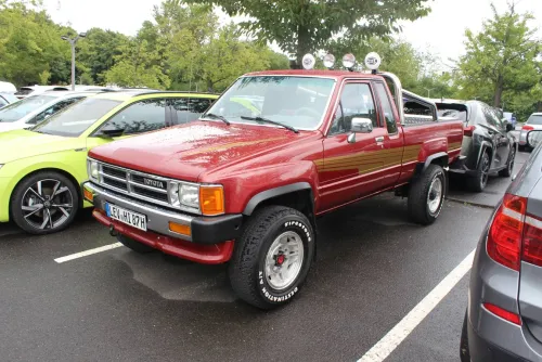 • Am Wochenende war ich in Köln in der Toyota Collection. Diese bietet einen guten Überblick über die Geschichte der Toyota-Exportfahrzeuge für Deutschland. Darüber hinaus gibt es einige Exoten, die in Deutschland nicht regulär zu haben waren. Da die Toyota-Collection nur einmal im Monat für vier Stunden öffnet, zieht das auch Fans der Marke an. Einer kam mit einem alten Hilux, ich denke mal, dass das Kennzeichen das Baujahr verrät. In der Reihenfolge der Bilder: Toyota Century (Luxuslimousine mit V12-Motor), Toyota 2000 GT (sehr zierlich und trotzdem ein Supersportwagen seiner Zeit, von dem gestern gleich vier Stück in der Halle standen), 1990 Toyota Sera (Flügeltürer), 1984 Toyota Tercel (Allrad-Kombi mit Hochdach und somit früher Vorläufer sowohl des Minivans als auch des SUV), 1979 Toyota Landcruiser FJ55 Station Wagon, 1972 Toyota Corolla, 1970 Toyota Corona, 1973 Toyota Celica ST, 1975 Toyota Corona, 1980 Toyota Cressida. Das ist nur ein winziger Ausschnitt, die Sammlung umfasst mehr als 70 Fahrzeuge.