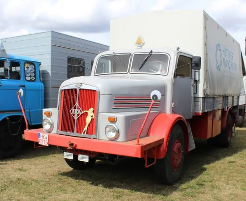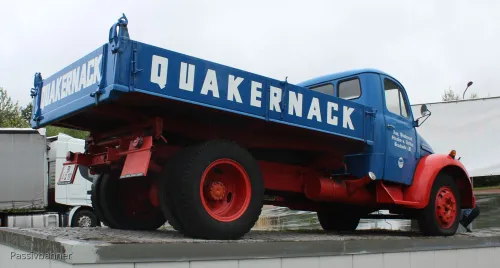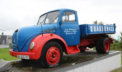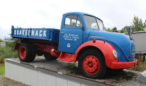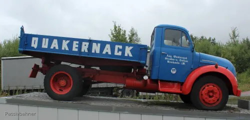 Das Fahrzeug ist Baujahr 1953. Ein Kras-Gespann ebenfalls in den Farben von Quakernack am Autohof Bitterfeld kann man hier sehen:
