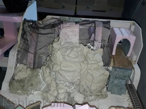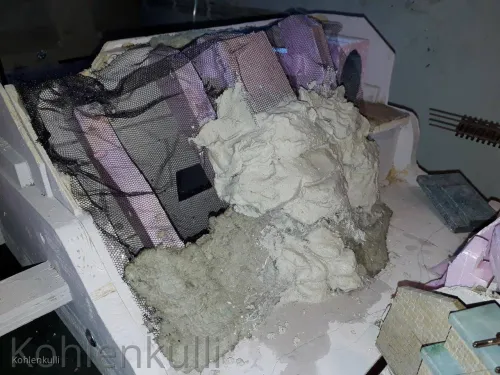Mit den Felsen geht es nun erst mal weiter, da ich das Gelände unter den Brücken gestalten muss, bevor ich diese einbaue. Und aus was sind die Felsen, Gips
