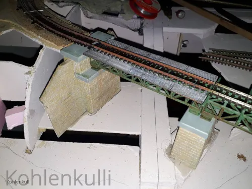 , schöner sieht's auf alle Fälle wieder aus.2. es geht nun wirklich mit dem Modulbau weiter, der Gleisbau ist weit fortgeschritten und die Brücke über die zwei Module ist so weit eingepasst das alles "nur" noch festgegeklebt werden muss.