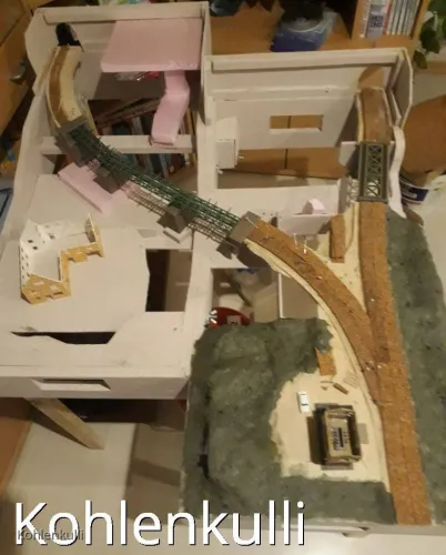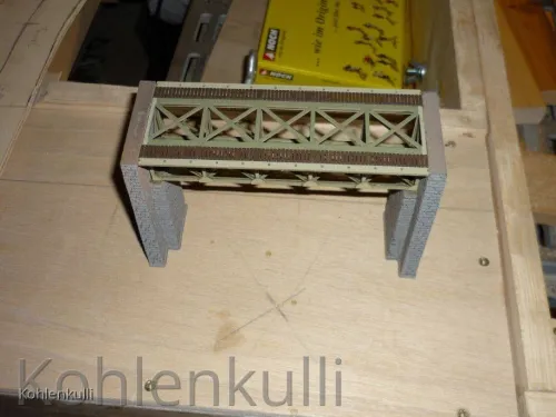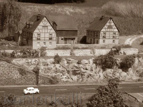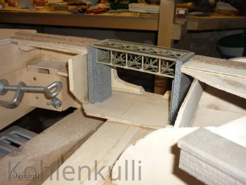 Mein Strassendiorama habe ich ganz einfach auf zwei Schraubzwingen gestellt, die ich ans Modul festgeschraubt habe, man muß halt die Kamera so halten, das man da keine Kante sieht und schon ist das Ganze wirkt viel breiter, hier sieht man es mal ganz gut ...