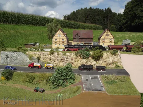 und drittens muß ich etwas gegen die Sonne knipsen, wenn ich die große Bahn mit auf die Bilder haben will, und da stören dann die Schatten an den Modellen