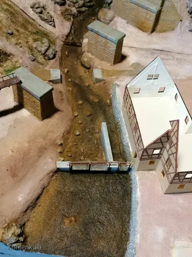 die Mauer den Bach runter wo das Mühlenrad hinkommt ist noch nicht festgeklebt,