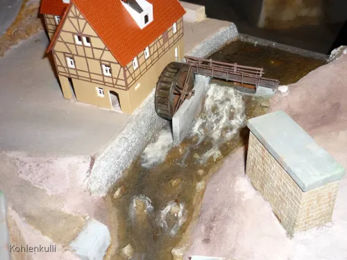 Wie gesagt, das "Wasser" in Form von Windows Colors hab ich heute noch einmal trocknen lassen, so das ich nur ein paar Bilder vom provisorisch eingestellten Mühlenrad hab.