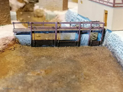 Nun noch einige Bilder, das Mühlenrad bzw. die Welle ist in die Mauer eingeklebt, so das ich da weiter machen kann, die Betonmauer ist immer noch nicht fest, so das hier das Wasser später noch fertig gemacht wird