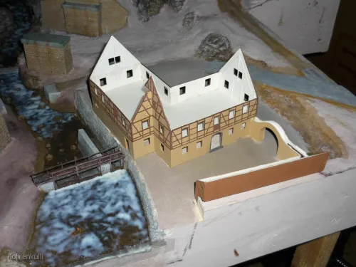 hier mal kurz ein paar Bilder von der Wassermühle. Die wird aus Teilen des Auhagen Bauernhof zusammen gebaut. Ich habe da lang überlegt und bin zu dem Entschluss gekommen, das beide Gebäude einen ähnlichen Stil bekommen sollen. Die einzelnen Spritzlinge waren schnell bestellt, genug andere Reste waren noch vom Bauernhof vorhanden, wo ich damals gleich 2 komplette Bausätze gekauft hatte (da waren die noch billig   )