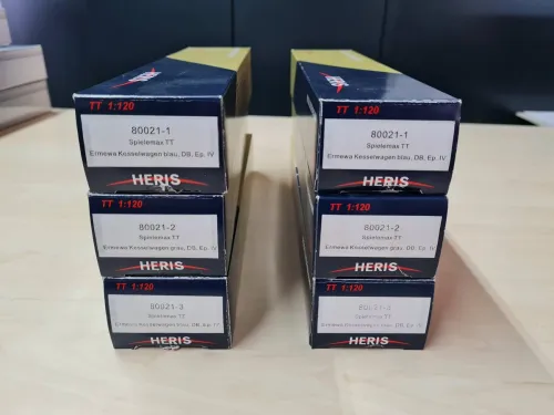 Heris Kesselwagen (hier lege ich zu jedem Wagen nach Wunsch Tillig Kupplung bei da sonst nur die Trennbare Steifkupplung dabei ist)