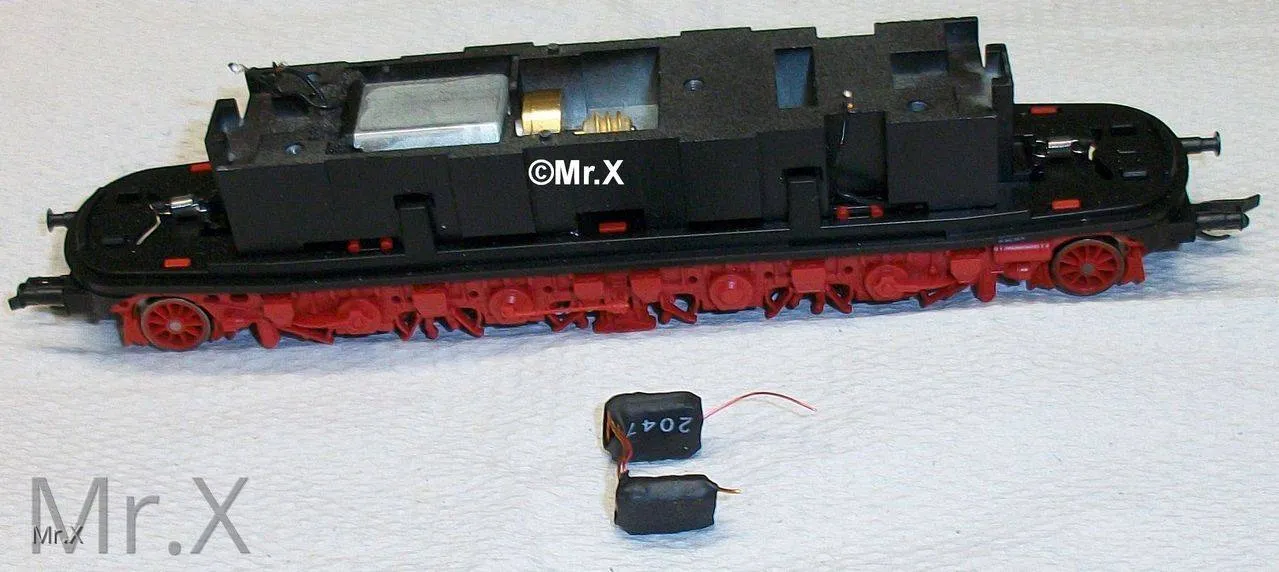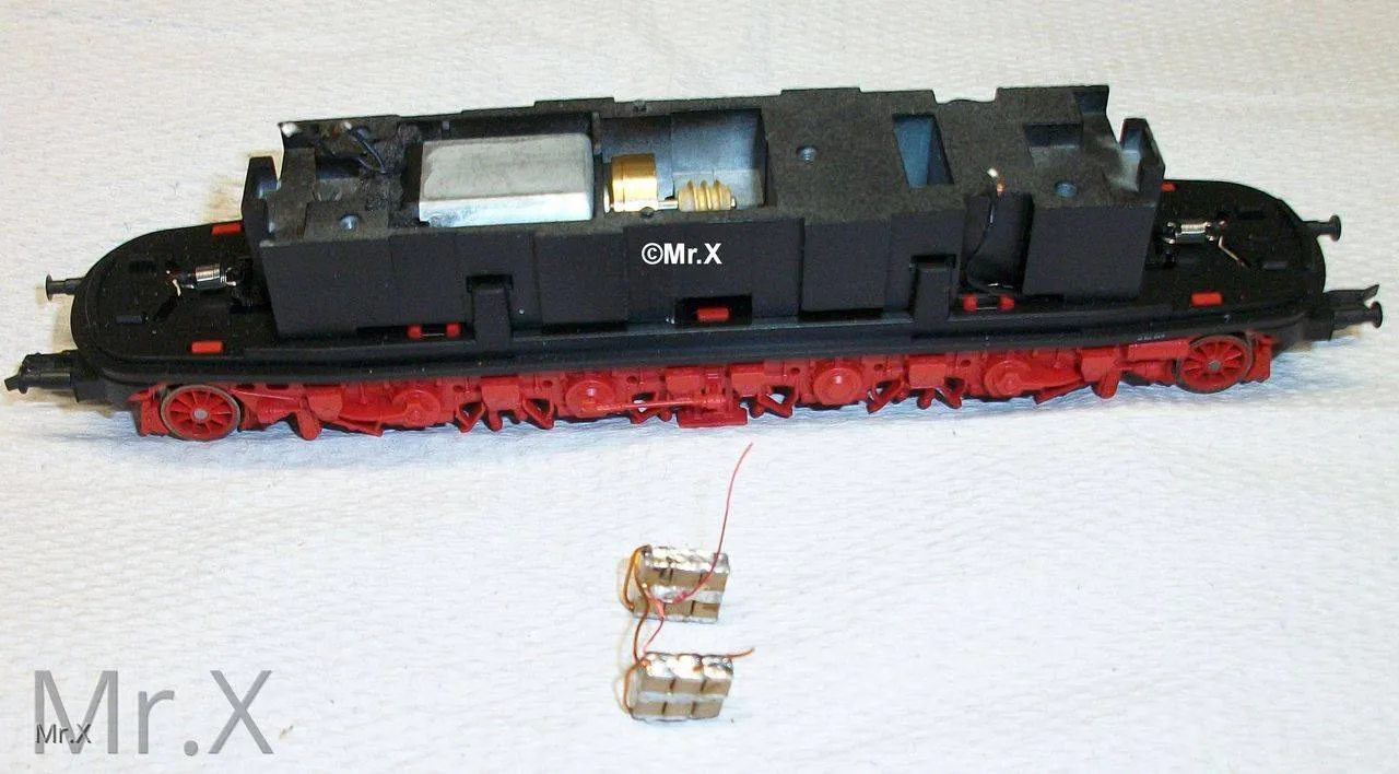 Die Teile zum Einbau. Die Pufferkondensatoren mit Ladeschaltung ersetzen das ursprüngliche Gewicht.