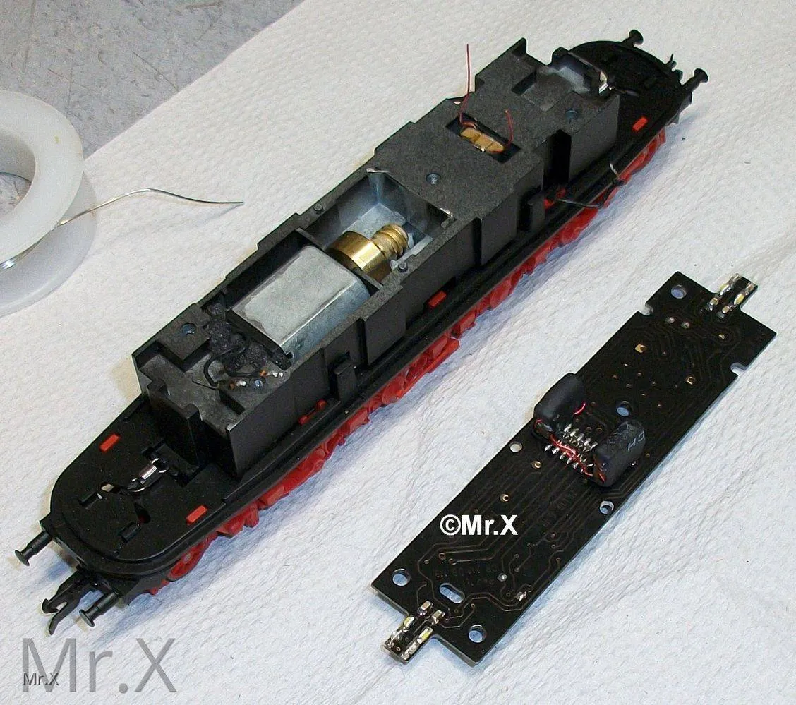 Die Platine passt natürlich auch in die JATT - Lokomotive, allerdings muss der Motor mit Litze verbunden werden und am Oberteil einige Anpassungen vorgenommen werden.