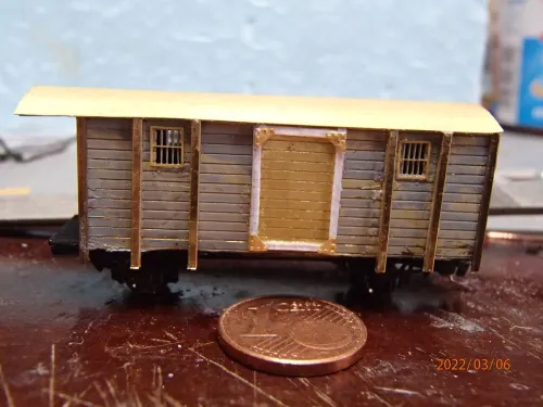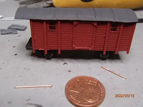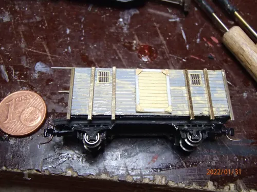 Und was mir eben noch auffiel: Die Laufschiene für die Tür fehlt auch noch. Für das Geländer habe ich was geätztes da. Mal sehen, wie ich es herausgetrennt bekomme. Der Hinweis mit dem Skalpell war schon sehr gut. Vielen Dank dafür.