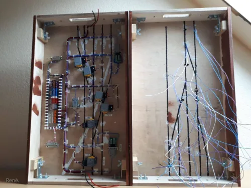 Da wir nun auch eine eingleisige Nebenbahn haben, und ich für meine Heimanlage auch einen Schattenbahnhof brauche habe ich da mal was gebaut.Es wird eine Abstellanlage mit einfacher Landschaftsgestalltung.Bin aber erst mal mit der Verdrahtung beschäftigt.