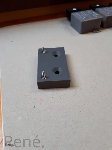 Heute mal die letzten Weichenantriebe eingebaut. Da ich die Antriebe nicht direkt auf den Modulkasten schrauben wollte (2mm Holzschrauben wären mir auch zu klein gewesen) habe ich mir Halter gebaut.So kann ich die Antriebe wechseln ohne das die Holzplatte beim rein und rausschrauben darunter leidet. ![]()