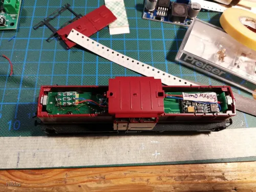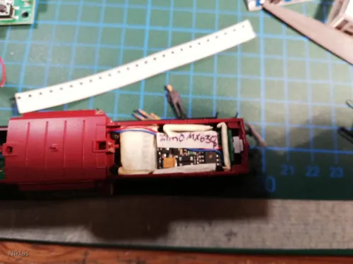 Ich habe mich dazu entschieden die Instrumentenbeleuchtung separat zu schalten. Die 2 Lötpads für den Lautsprecher könnte ich verwenden, da diese bei dem MX630 Funktionsausgänge sind. Den gem. + und den 3. Schaltkanal habe ich direkt am Decoder Angelötet.