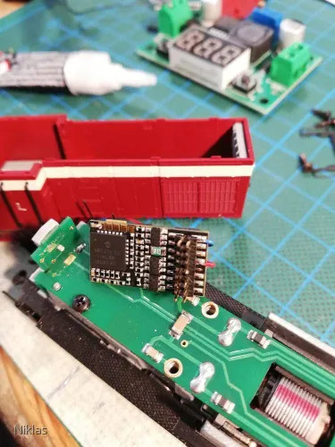 Bis dahin kann ich ja weiter am "LO" bauen, da fehlt mir noch ein passender Akku für den Anhänger, damit dort keine Kabelverbindung zum Zugfahrzeug bestehen muss.