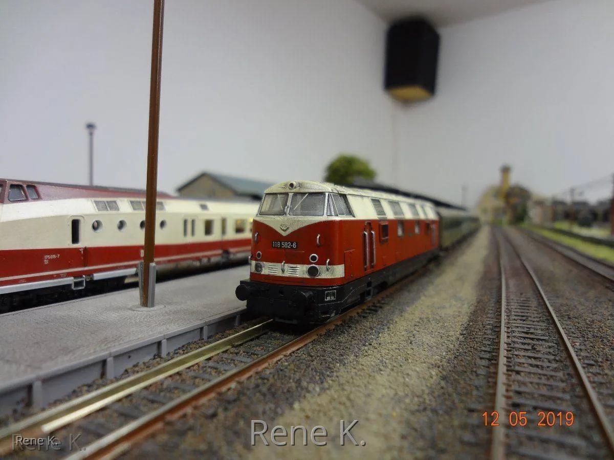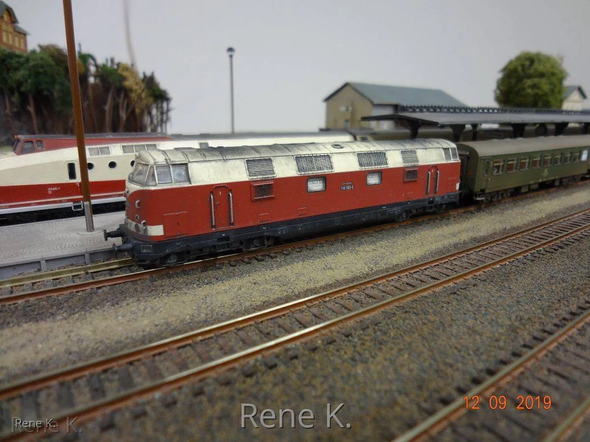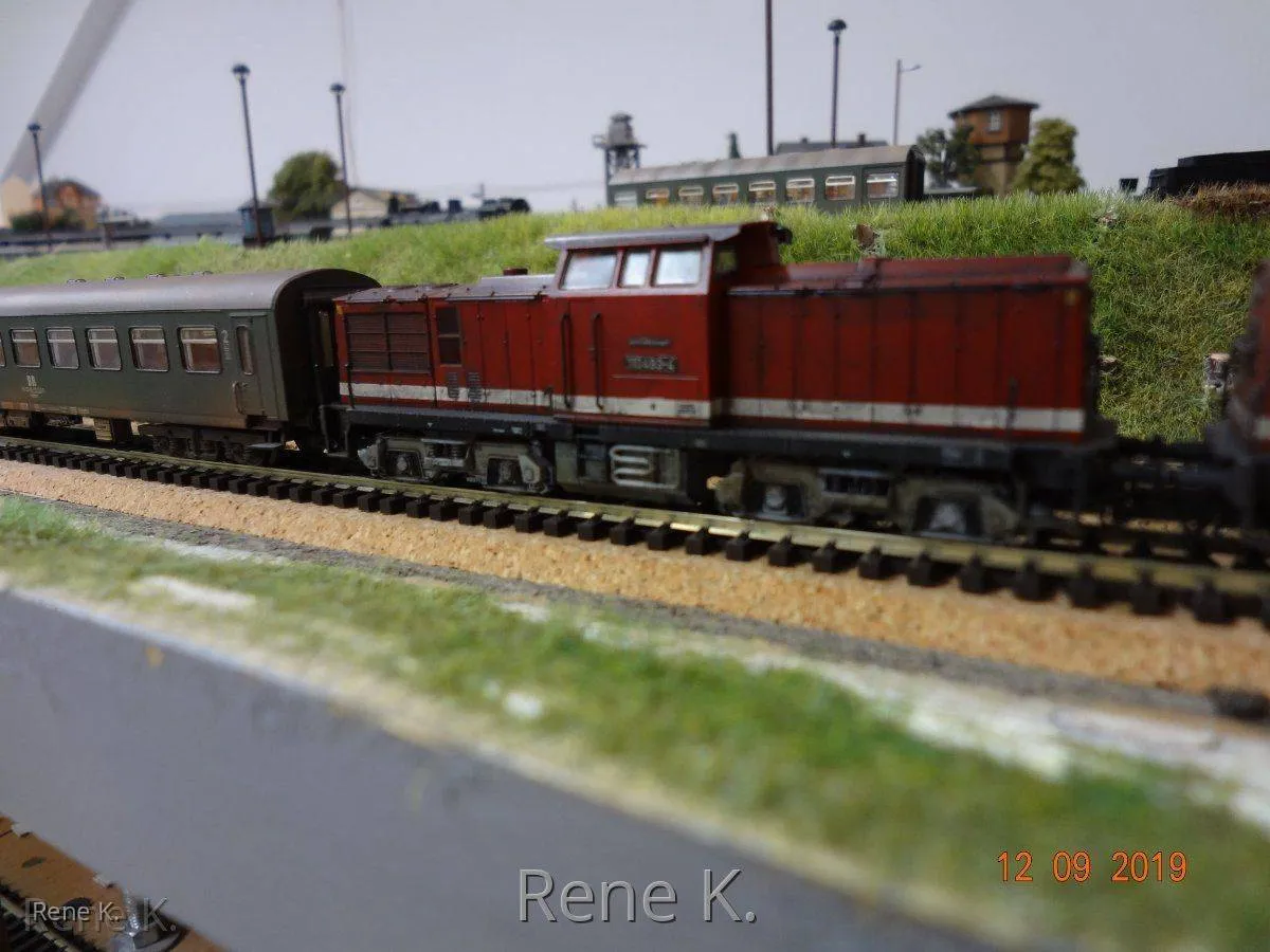 Dieser Speisewagen war mal ein Bausatz von Sören Horn aus Berlin, an dem Wagen habe ich ca 160 Stunden gearbeitet. Im Wagen wurde eine geätzte Inneneinrichtung eingebaut, die mir Grischan aus Dresden gemacht hat und die Teller und Tassen von der Digitalzentrale, sowie die Beleuchtung die mir Roland Weber speziell für diesen Wagen entwickelt hat .Die Figuren sind kleine Preiserlein.Der Wagen ist Digital und es kann die Küche , der Speiseraum und die Tischlampen seperat geschaltet werden.Lackiert habe ich den Wagen mit Airbrush unddie Beschriftung ist mittels Decals aufgebracht . Zum Schluß habe ich den wagen gealtert.