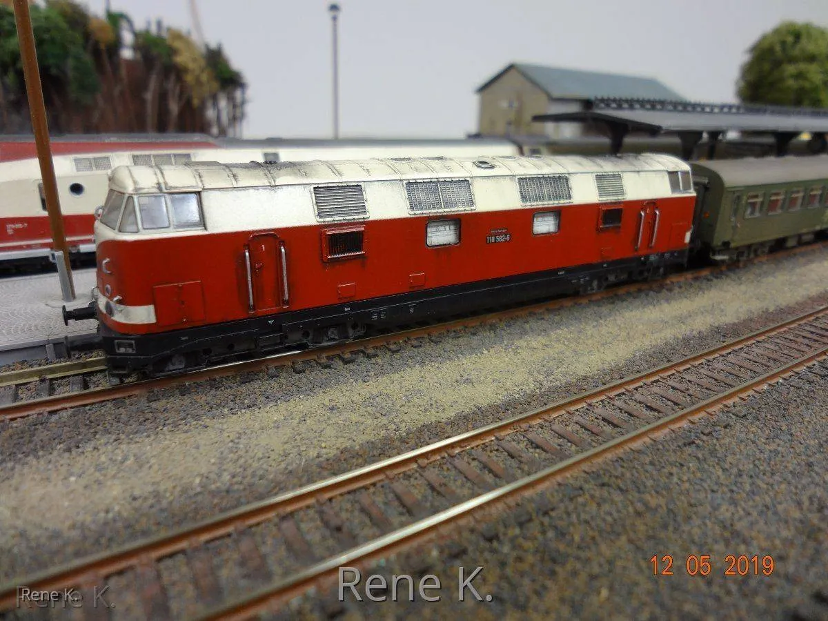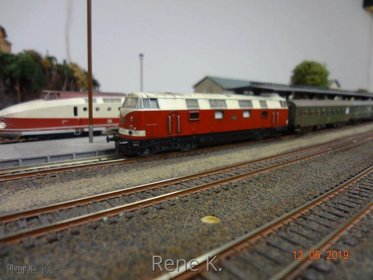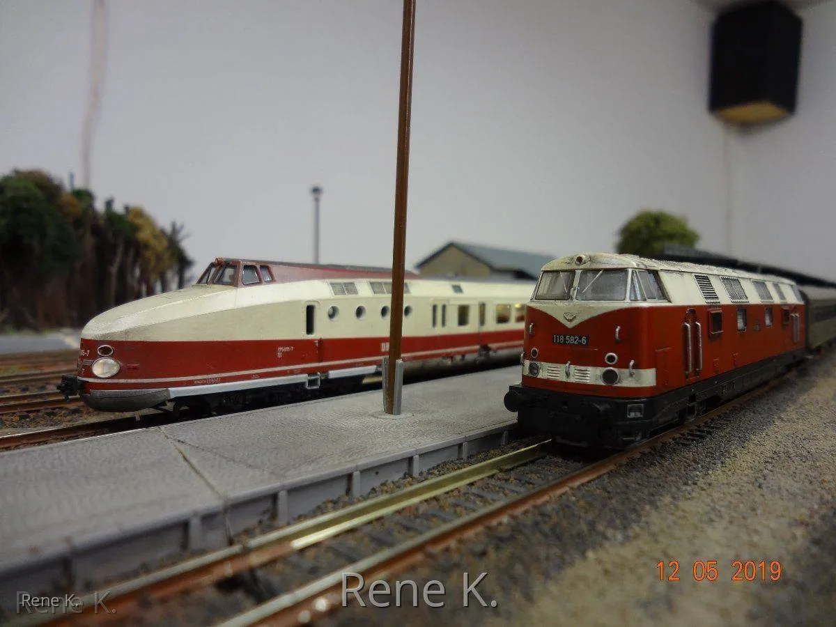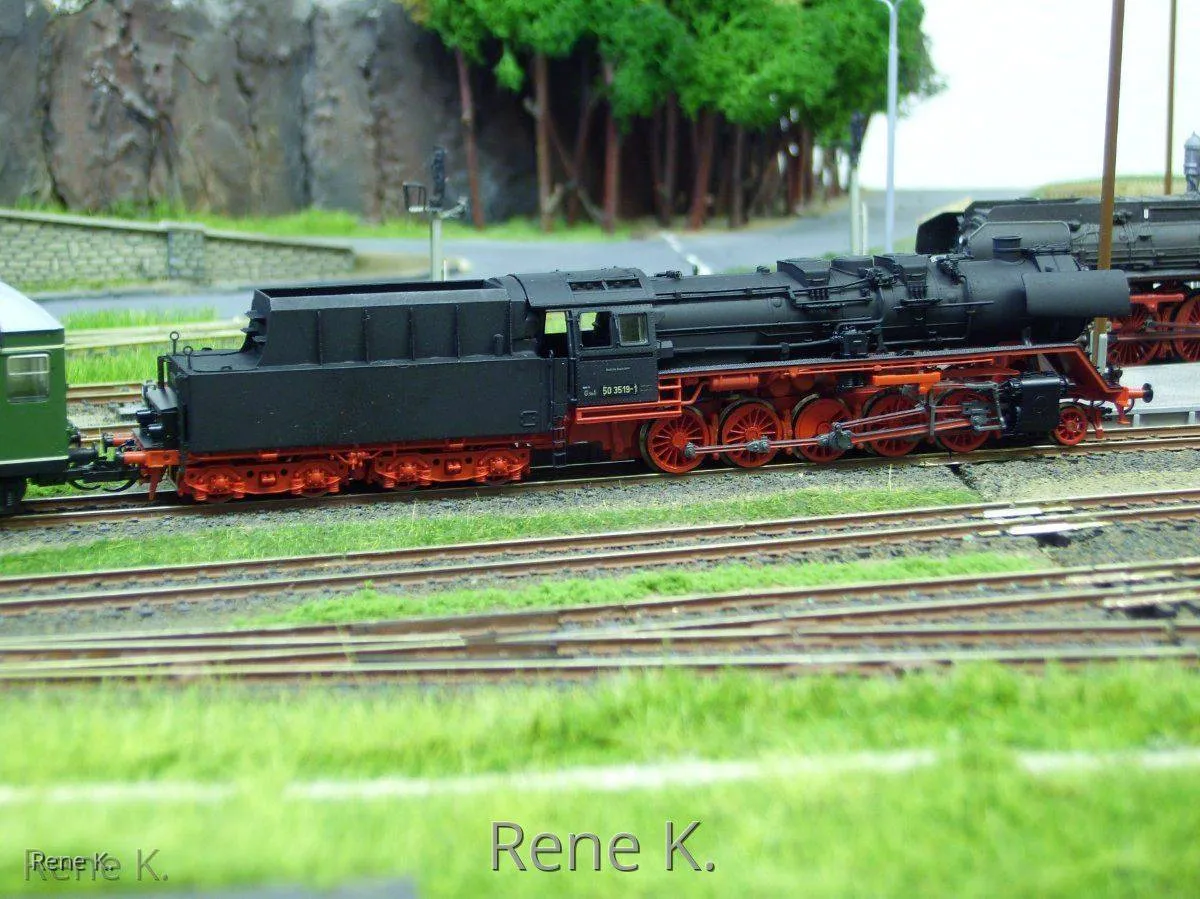 Dieser Speisewagen war mal ein Bausatz von Sören Horn aus Berlin, an dem Wagen habe ich ca 160 Stunden gearbeitet. Im Wagen wurde eine geätzte Inneneinrichtung eingebaut, die mir Grischan aus Dresden gemacht hat und die Teller und Tassen von der Digitalzentrale, sowie die Beleuchtung die mir Roland Weber speziell für diesen Wagen entwickelt hat .Die Figuren sind kleine Preiserlein.Der Wagen ist Digital und es kann die Küche , der Speiseraum und die Tischlampen seperat geschaltet werden.Lackiert habe ich den Wagen mit Airbrush unddie Beschriftung ist mittels Decals aufgebracht . Zum Schluß habe ich den wagen gealtert.