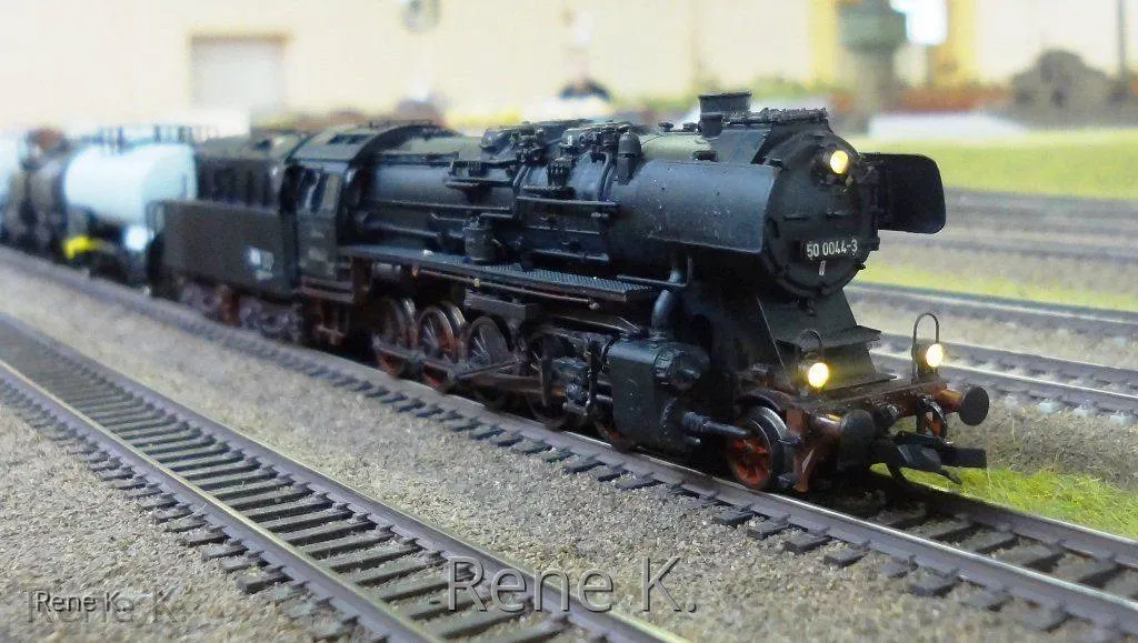 die 94er ist mit dem Motor fast lautlos, es ist nur das rattern der Weichen und Schienenstöße zu hören, es ist ein Faulhaber 1019 mittlerweile hat die Lok Sound und Beleuchtung