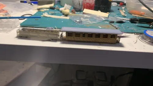 Angefangen habe ich dann auch mal mit meinem Großfenstrigen Wagen welchem ich auch noch ein neues Dach druckete der erste Versuch war leider zu lang so hab ich alles noch mal überarbeitet.