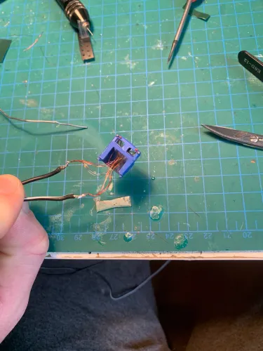 Ganze 16 Drähte wurden dann in eine Gefräste Nut im Gehäuse eingeklebt. Und überlackiert.