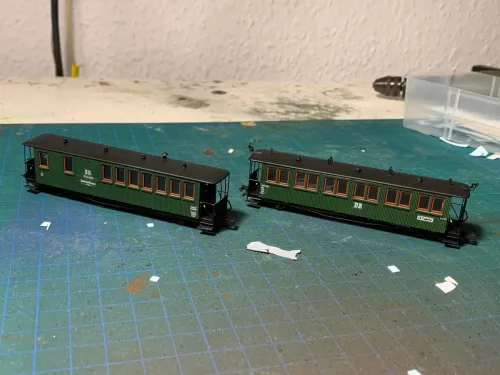 Ich hab noch mal ein paar kleine Überraschungen parat…. Die beiden Zittauer in Epoche 3 nun sowie den Packwagen, Aussichtswagen und Großfenstrigen Traglastwagen. Nachdem ich die letzten Tage jeden Abend Gewerkelt habe sind die guten Stücke nu endlich Fertig, und nu könnt ihr Guggen