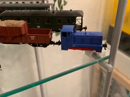 da ich nu im Besitz eines 2. Neuen 3D Druckers bin hab ich gleich mal den Versuch gewagt für ein Probemodell welches dann Zeigt wo noch dran gearbeitet werden muss, das wären zum Beispiel den Schemel Drehbar machen und Orte Schaffen um noch ein paar Gramm Gewicht mit einzubringen. Was nicht mal zwingend notwendig ist denn der Wagen fuhr auch schon auf Holprigem Bettungsgleis mit schweren Wagen im Gepäck unterm Weihnachtsbaum