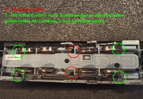 Zum Öffnen der Lok: Für das Abnehmen des Gehäuses hat sich Piko ganz etwas Besonderes einfallen lassen - Schrauben UND Rastnasen.