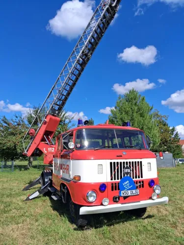 Ach Leute, ich hab den nur geknipst, weil er einfach da stand. Glaube auch nicht das es DDR Zeiten so etwas gab, schon gar nicht wie er seitlich dekoriert war, was ich nicht geknipst habe. Mich ärgerte nur , das ich den K30 nicht mehr erwischt habe und dann den neuen Tatra mit 8,5m³ Wassertank der Königsbrücker Ffw nicht geknipst hatte. Das ist schon ein beeindruckendes Fahrzeug.