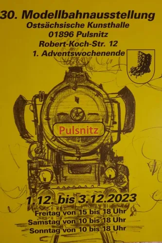 Zum zum Pulsnitzer Nikolausfest findet wieder unsere kleine Modelleisenbahnausstellung statt, und das schon zum 30ten Mal. Es wird einiges , naja fast alles, in der SpurTT sein. Selbst gebackener Kuchen und Stollen und Kaffee gibt's wieder in unserem kleinen Imbis.