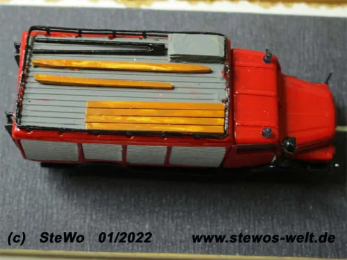 Ja, schön wäre es, wenn es solch ein Fahrzeug noch geben würde. Leider ist es doch wieder nur ein Modell. Basis bildete wieder mal ein H3A von Tillig. Ich habe den Radstand auf das erforderliche Maß verlängert. Der Aufbau ist diesmal ein 3D-Druck-Teil. Den hat mit ein Kollege nach meinen Daten gedrückt. War ein erster Versuch. Ist noch nicht zu 100% ausgereift, ließ sich aber verwenden. Die Rollladen sind einzeln eingesetzt. Die Dach-Reling ist ein Ätzteil einer dreiteiligen Schiffs-Reling, die ich um eine Führung erleichterte. Noch ein wenig Farbe und kleine Plasteschnipsel und fertig ist der GW. Ich hoffe er gefällt.