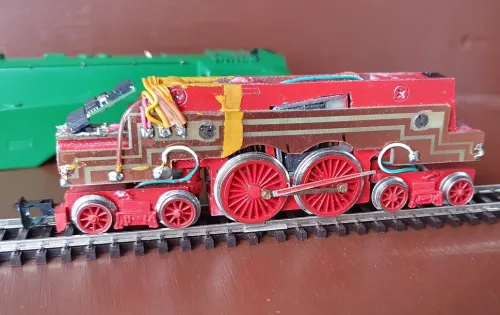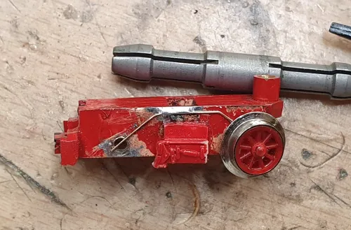 Wer die feinen Teile der Crottendorfer schonmal verbaut hat, wird das Problem der Befestigung kennen. Einfach drankleben? Nee, dann kommt man ja nicht mehr ran. Außerdem hält der "Klemmriegel" der originalen Rauchkammertür Kessel und Fahrwerk zusammen.